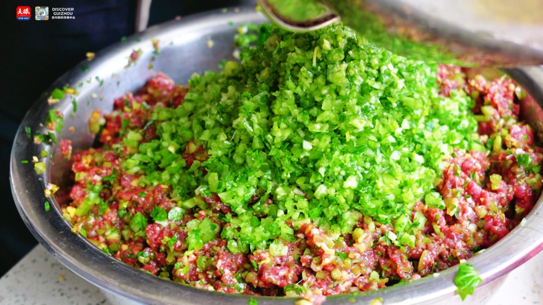 这时,老师端来一碗自制的煳辣椒蘸水——这是贵州人餐桌上不可或缺的灵魂调味,也是独属于贵州的烟火滋味。留学生们好奇地蘸上一点,轻轻送进嘴里,瞬间被这独特的风味吸引。“很特别的味道,有点辣,但是很香!”叶晨笑着说道,“这就是贵州的味道!”