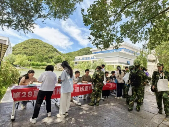 推普活动延伸至校外。师生赴清镇市新店小学与新店中学开展互动教学、经典诵读等活动,激发乡镇中小学生普通话学习兴趣,提升其语言应用能力。
