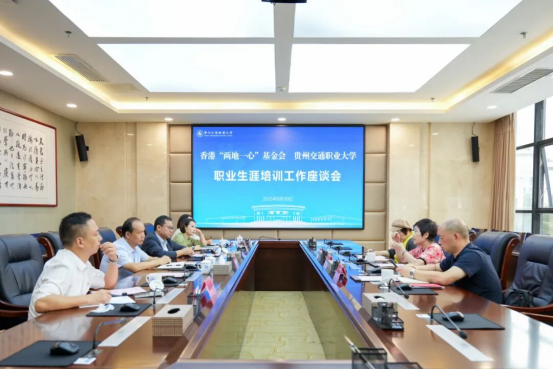 在实地考察后,高嫣嫣委员、黄茵茵主席在省委统战部三处孔祥龙处长陪同下,与我校展开座谈。座谈会上,刘雁代表学校对考察团一行的到来表示热烈欢迎,并衷心感谢香港“两地一心”基金会为助力贵州学子职业生涯发展所作出的贡献。他简要介绍了学校办学情况,并指出,当前我校学生职业生涯规划教育正处于持续发展与深化阶段,学校高度重视引导学生明确职业发展方向。他表示,系统化、专业化的职业生涯规划指导对于学生成长成才、促进就业具有重要意义,学校期待与香港“两地一心”基金会进一步加强合作,共同构建覆盖面更广、可持续、可复制的职业生涯规划培育体系,为提升人才培养质量注入新动力。