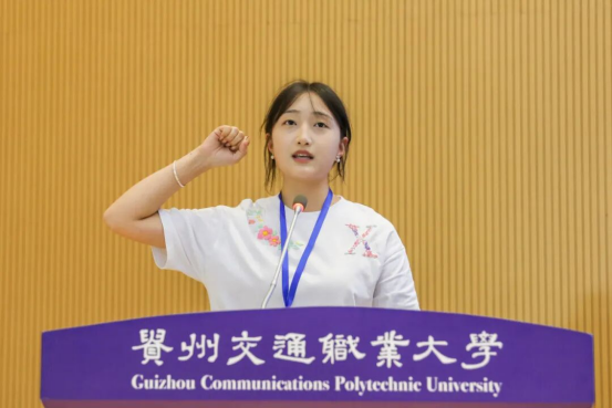 在全场的见证下,裁判员代表王芳与参赛选手代表、贵州交通职业大学学生陈先忆分别登台宣誓。裁判员代表承诺将严格遵守赛事规则,秉持公平、公正、公开的原则执裁;参赛选手代表则表示将以最佳竞技状态投入比赛,严格遵守赛场纪律,赛出水平、赛出风格。
