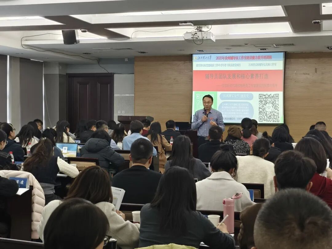 培训班紧密围绕“工作室建设”“辅导员职业发展”“数字赋能”等主题,特邀沈阳工业大学李青山、江西理工大学饶先发、陕西科技大学李萌、西北大学常雅慧、贵州交通职业大学肖梅等全国辅导员队伍建设专家开展专题讲座,系统阐释辅导员工作室多元形态定位、团队化建设路径与数字化工作模式创新等内容,深入解析破解辅导员“事务繁重、成长乏力”困境的实践方案,为参训学员搭建起兼具理论高度与实操价值的学习交流平台。