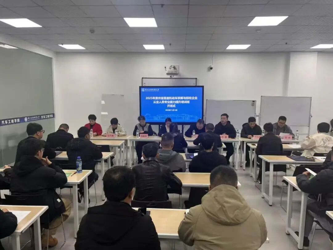 11月12日,贵州省再生资源行业协会2025年报废机动车拆解与回收企业从业人员专业技能提升培训班在贵州交通职业大学正式开班。省再生资源协会秘书长刘仁敏、中国物资再生协会原副会长高延莉,学校校企合作处处长王毅、汽车工程学院相关负责人,以及来自省内29名从业人员参加开班仪式。