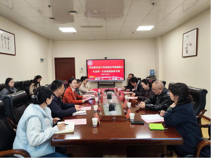 11月21日,贵州电子科技职业学院副院长毛志伟一行5人到我校座谈交流。学校党委委员、副校长贺梦依出席会议。