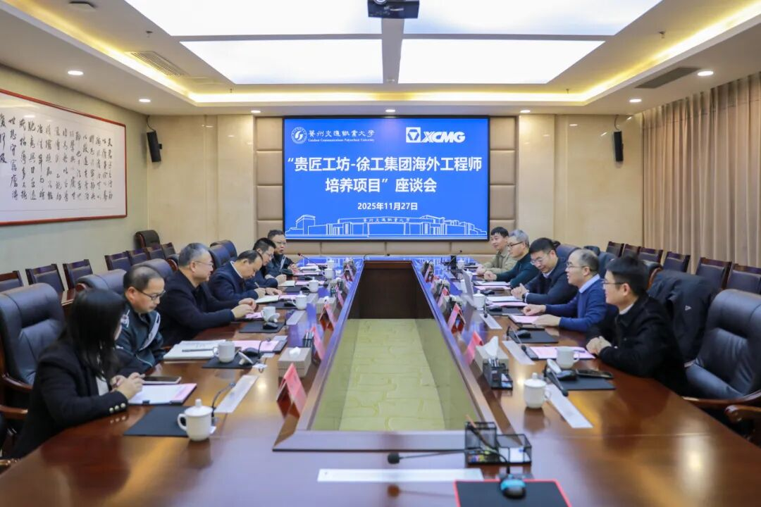 11月27日,徐工集团-贵州交通职业大学“贵匠工坊—徐工集团海外工程师培养项目”在我校启动。徐工教育科技集团有限公司总经理助理王赛,徐工挖机党委工作部、人力资源部部长张松松一行到校就项目开展作研讨交流,校党委副书记、校长刘雁出席座谈交流会。会议由智能制造学院院长王强主持。