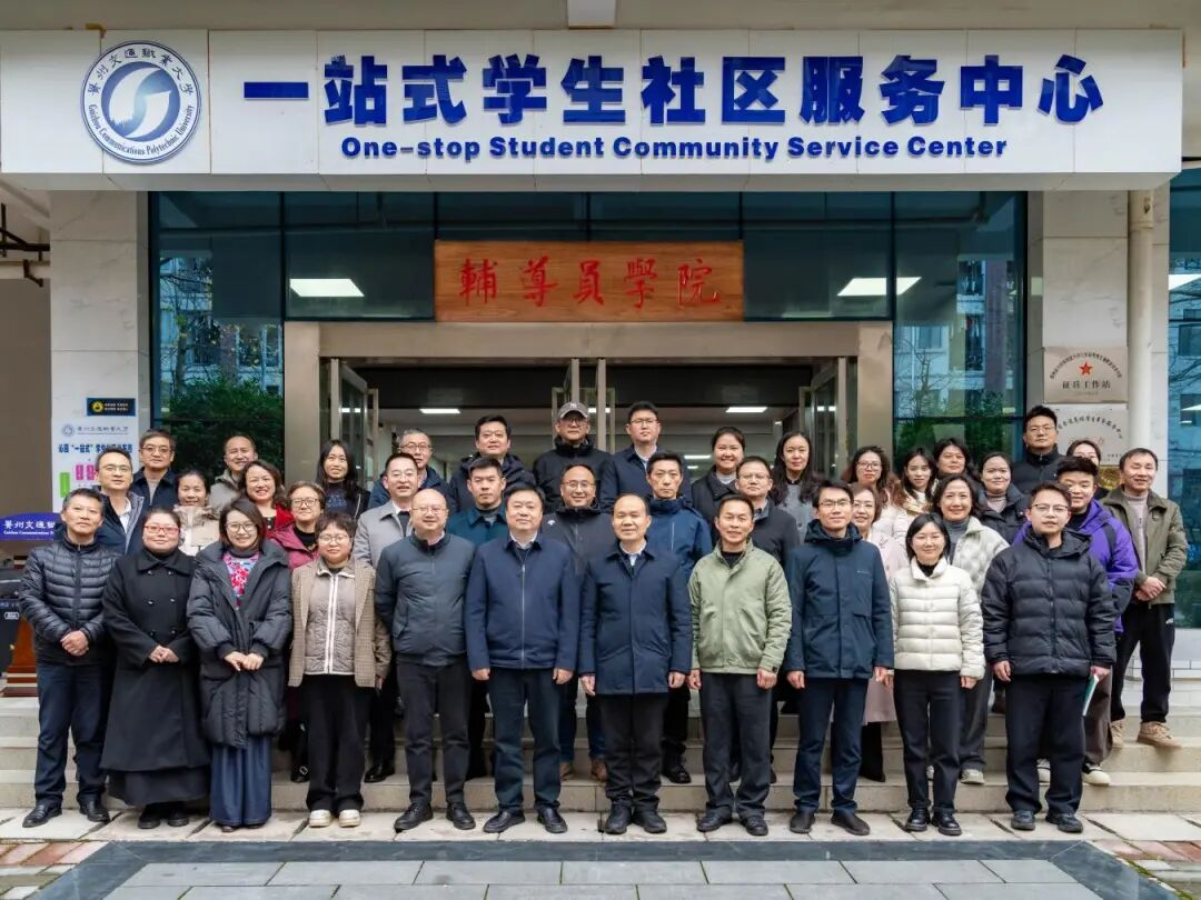 12月24日,学校辅导员学院揭牌仪式在一站式学生社区服务中心举行。省教育厅相关处室同志和有关高校(专家)领导,学校党委书记何兴发,党委副书记、校长刘雁,党委副书记杨再豪,各学院有关负责人、各辅导员工作室主持人、全体专职辅导员及辅导员学院相关工作人员齐聚现场,共同见证学校辅导员队伍建设工作创新发展的重要时刻。
