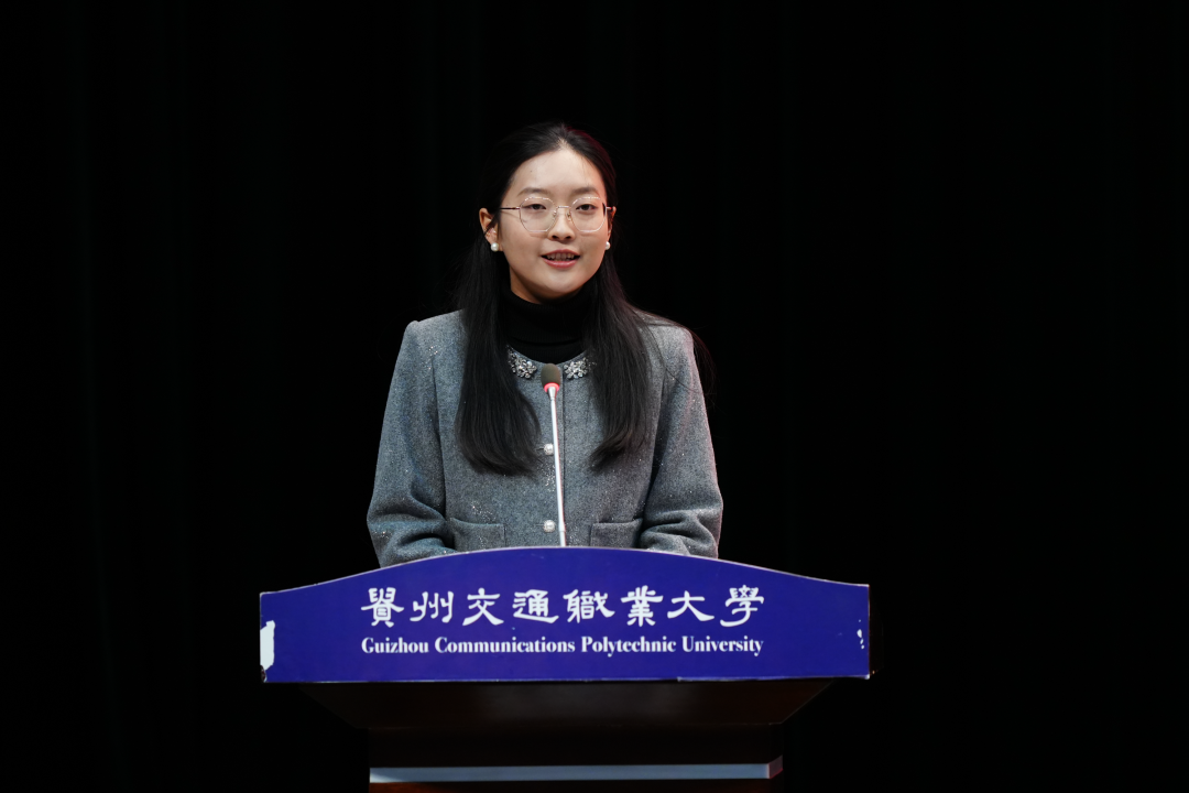 教师代表建筑工程学院辅导员何洁勉励同学们保持谦虚谨慎、刻苦务实的作风,在青春赛道上奋力奔跑,书写属于自己的精彩篇章。
