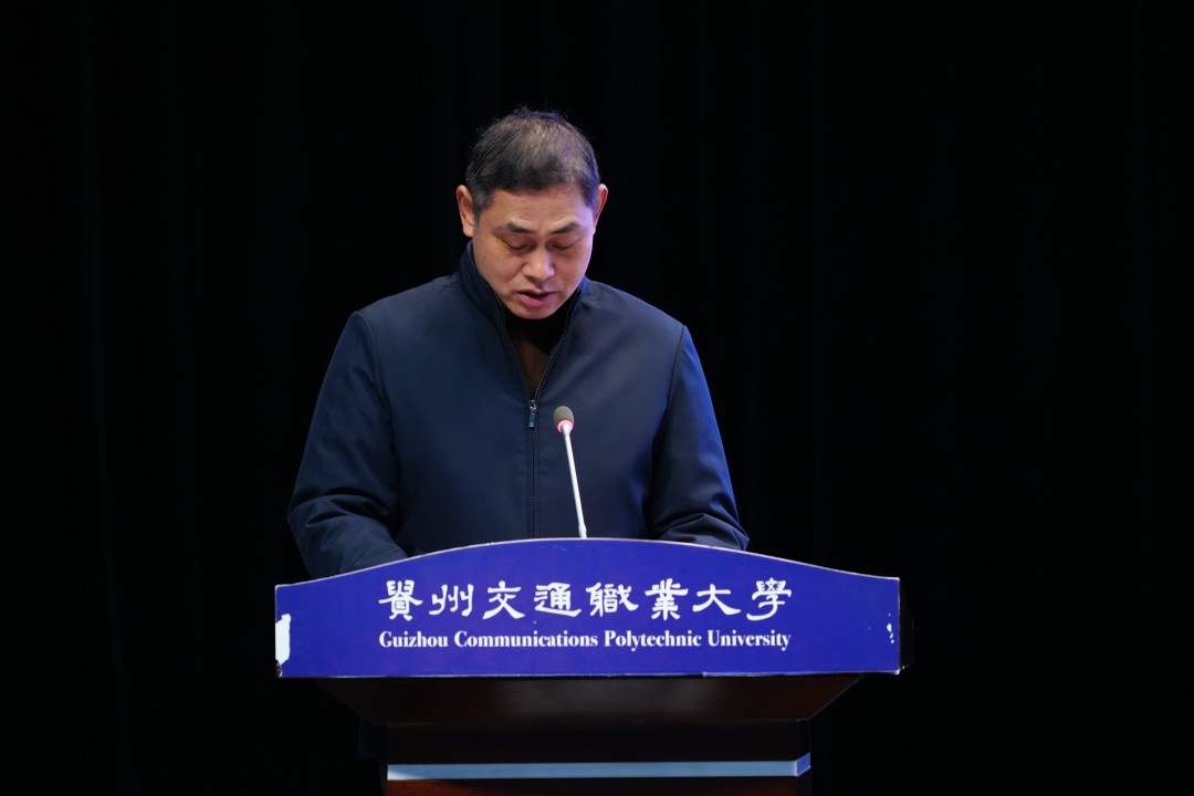 校党委副书记、校长刘雁代表学校向获得表彰的先进集体和优秀个人表示热烈祝贺,向辛勤培育学生的全体老师、辅导员、班主任致以诚挚谢意。他充分肯定了一年来我校青年学生在各方面取得的优异成绩,并围绕学生成长与发展,提出三点希望:一要坚定技能报国信念,把个人理想融入交通强国建设和贵州高质量发展的蓝图中,走好技能成才、技能报国之路;二要保持终身学习状态,掌握扎实的专业本领,主动学习新技术,培养跨学科思维和创新能力,让学习成为远航的永恒动力;三要锤炼吃苦奋斗品格,以谦逊之心治学,以坚韧之志克难,真正成长为能够担当重任的大国工匠、能工巧匠。广大教职工要始终坚守立德树人使命,以学校新成立的“辅导员学院”为新起点,进一步贴近、关爱、引导学生,做好学生成长路上的知心人和领航员。