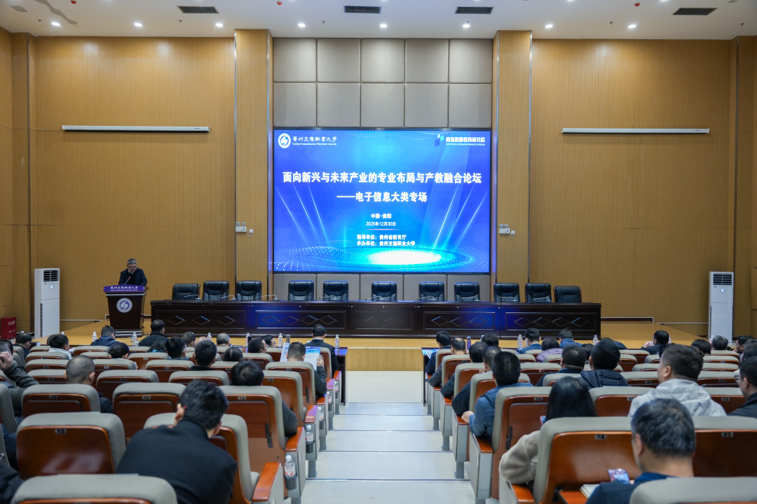 12月30日,由贵州省教育厅指导,贵州交通职业大学承办,贵州省职业教育学会教育教学工作委员会、中国-东盟职业教育研究院协办的“面向新兴与未来产业的专业布局与产教融合论坛——电子信息大类专场”在我校成功举行。来自省内外电子信息领域行业企业、职业院校的两百余位企业代表及专家学者,聚焦人工智能、低空经济、具身智能等新兴方向,共同探索产教融合新机制,为贵州未来产业发展注入人才与创新动力。
