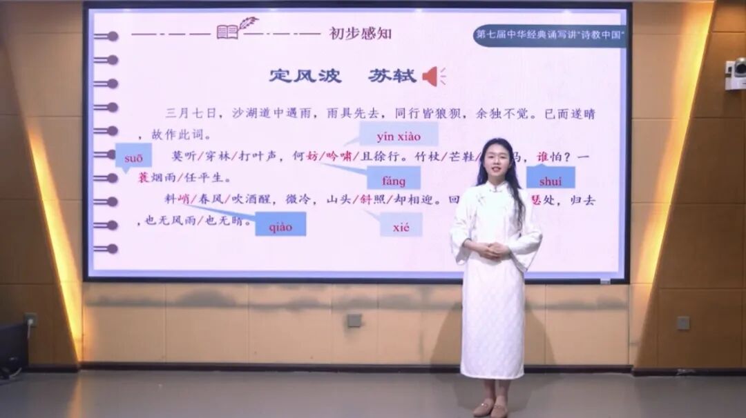 近日,教育部公布了第七届中华经典诵写讲大赛获奖名单,我校通识教育学院教师沈松钦的《定风波·莫听穿林打叶声》作品荣获“诗教中国”诗词讲解大赛大学教师组国赛三等奖,展现了我校教师中华优秀传统文化传承者的时代风采。