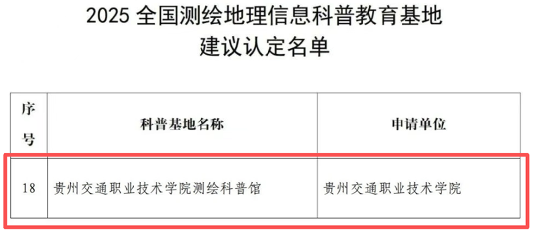 未来,贵州交通职业大学将继续秉承“科普为民、服务社会”宗旨,持续推动测绘地理信息知识的普及与创新,为提升公众科学素养、服务地方发展贡献更多交职大力量。