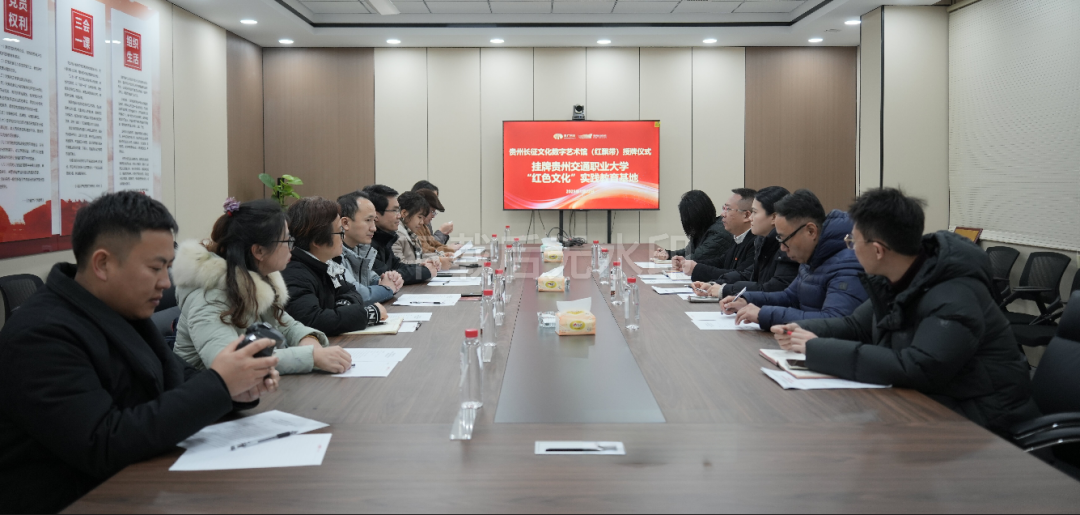 1月22日,贵州交通职业大学与贵州省文化旅游科技有限公司举行签约仪式,校企深度融合携手共建“红色文化”实践教育基地。学校党委副书记杨再豪、贵州省文化旅游科技有限公司总经理苏蓓出席仪式,共同见证此次合作落地。依托该公司旗下“红飘带”——贵州长征文化数字艺术馆这一优质载体,双方将开启红色教育创新融合崭新篇章。