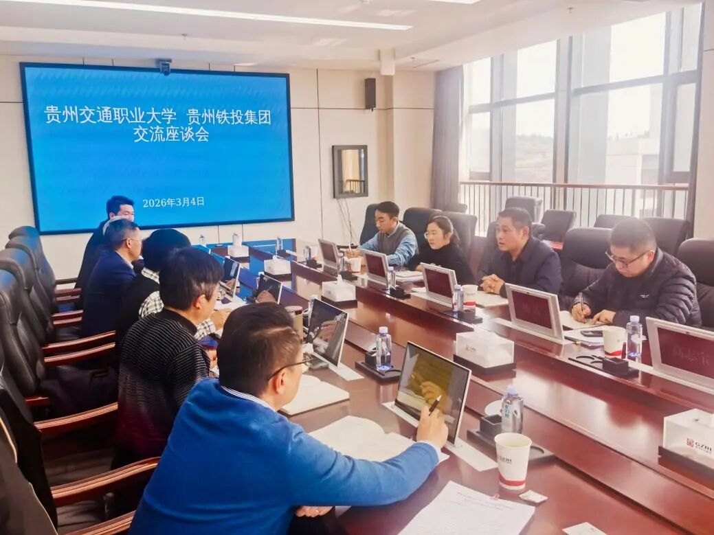 座谈会上,双方围绕科技创新、人才培养、社会服务等领域开展深入交流,共同探讨务实合作路径。贵州铁投对学校一行表示热烈欢迎,并介绍了企业在铁路投资建设、运营管理、技术创新等方面的最新进展与发展规划。